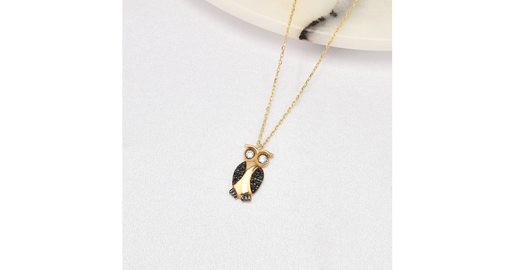 Owl Necklace, 14K Gold Owl Necklace, Owl Charm Necklace, Animal Necklace, Gold Animal Necklace, Luck