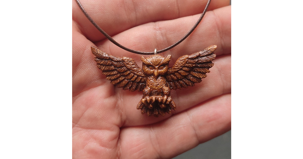 Hand Carved Walnut Wood Owl Necklace: Unique Statement Pendant