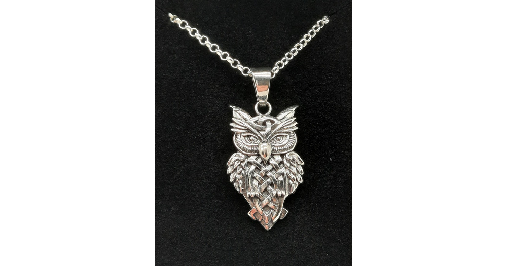 Celtic Knot Design Owl Pendant and Belcher Chain - Sterling Silver