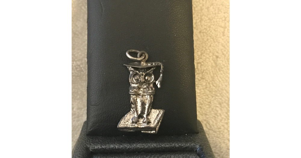 Vintage Wise Graduation Owl Silver tone Charm or Pendant