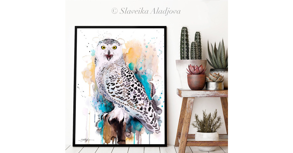 Snowy Owl watercolor framed canvas by Slaveika Aladjova, Limited edition, art, animal, animal illus