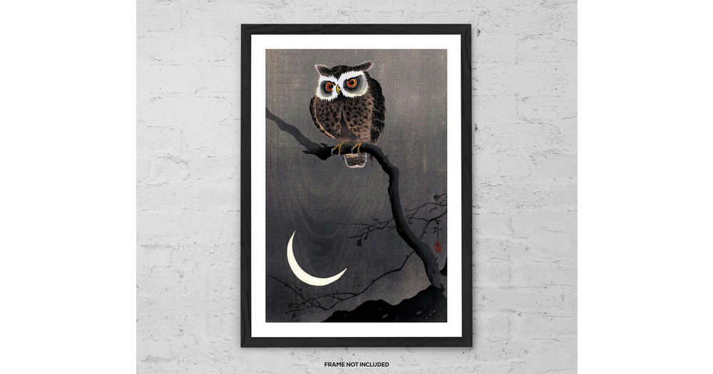 Long Eared Owl on Bare Tree Branch by Ohara Koson - Art Print - Vintage Japanese Woodblock Poster -