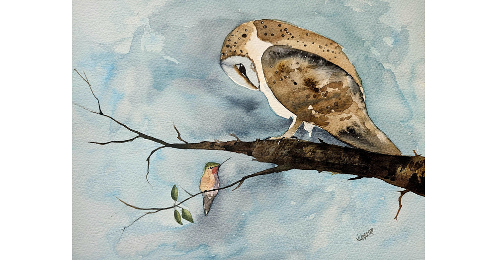 Barn owl Print, owl prints, animal art, bird painting, humming bird, watercolor print, birch tree pr