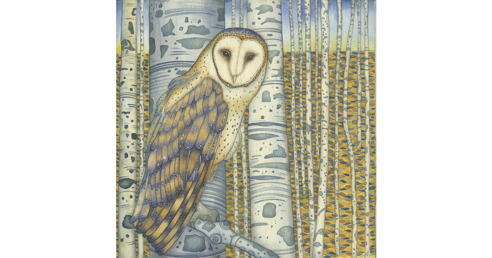 Fine art print of an original painting: 'Barn Owl in the Birch Wood'