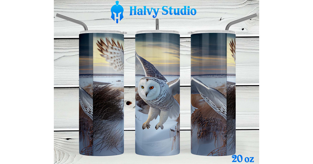 Snowy Owl, bird, snow, country #0021 sublimation design for 15oz, 20oz straight, 20oz tapered, and 3