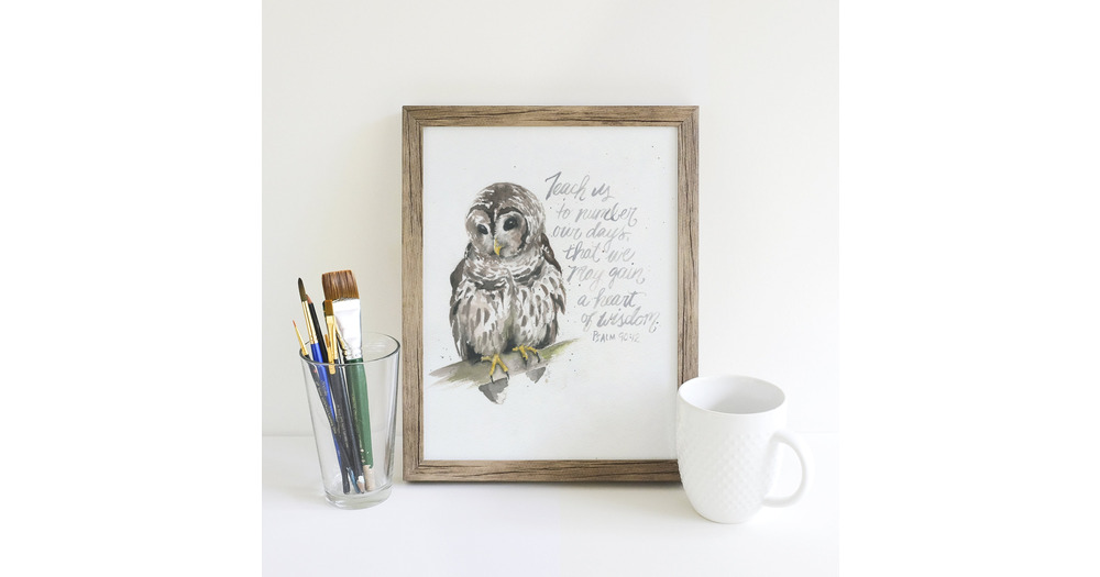 Watercolor Barred Owl Print with Hand-lettered Bible Verse for Rustic or Cottage Core House Decor |