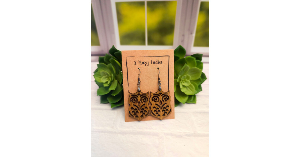 Handmade Laser Cut Wood Owl Earrings: Lightweight Dangle Jewelry