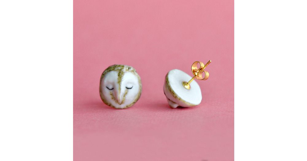 Owl Earrings Studs | Handcrafted Porcelain Jewelry | Camp Hollow Collectible Heirloom Art | The Perf