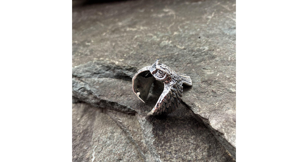 Handcrafted sterling silver ring: Owl