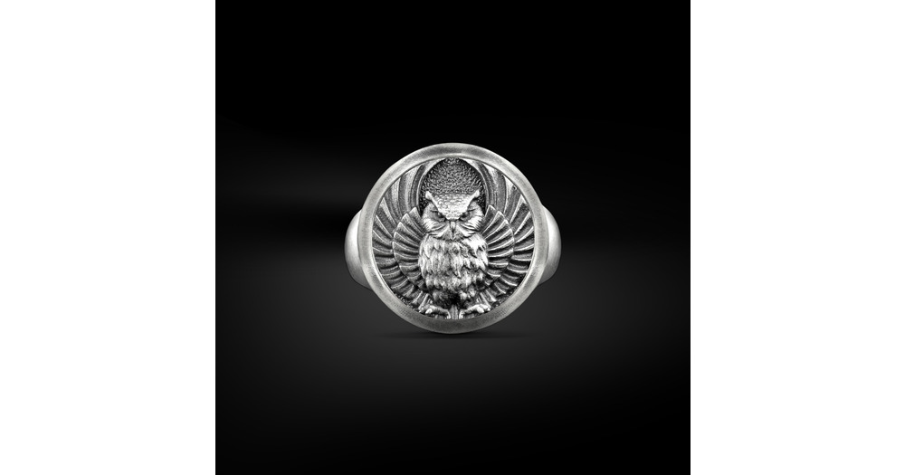 Owl The Sign of Wisdom Signet Ring for Men in Sterling Silver, Tiny Bird Ring for Nature Oxidized Si