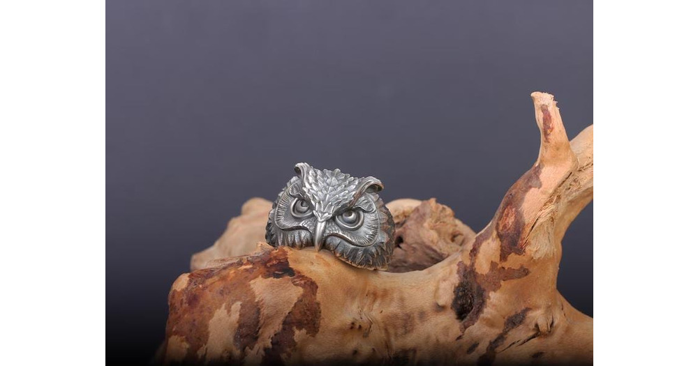 Oxidized Sterling Silver Owl Ring: Gothic Animal Totem Jewelry