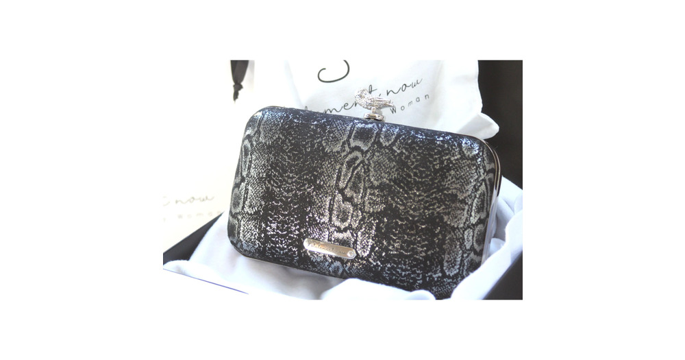 Handmade Italian Leather Clutch Bag: Silver Snake Print, Owl Clasp