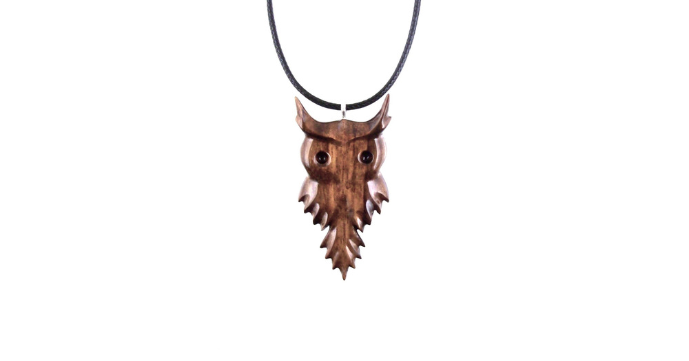 Hand Carved Wood Owl Pendant Necklace, Bird Wooden Jewelry, Spirit Animal Totem Gift