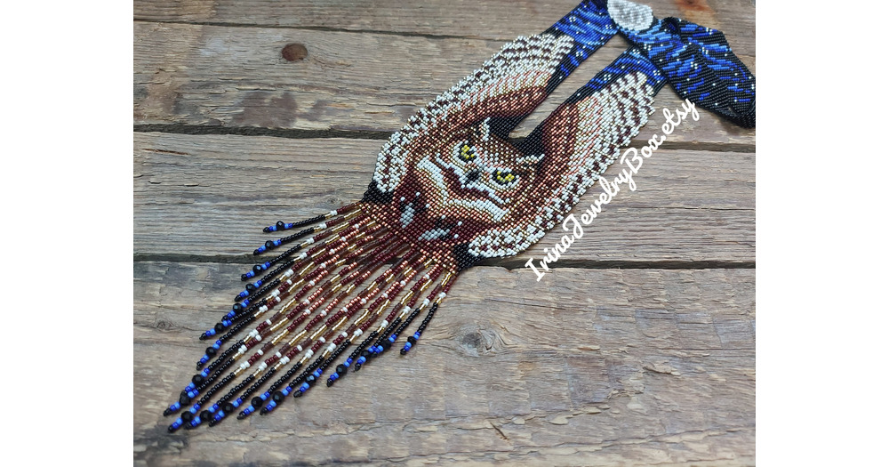 Owl Beaded Necklace: Handmade Long Seed Bead Loom Artisan Jewelry