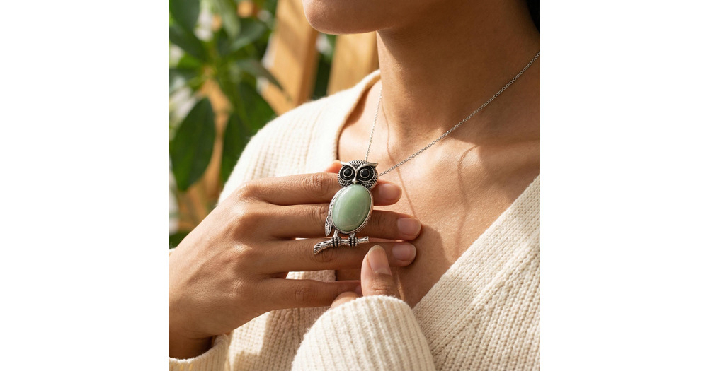 Natural Green Aventurine Owl Necklace – Certified Crystal Pendant for Wealth, Calming Energy &