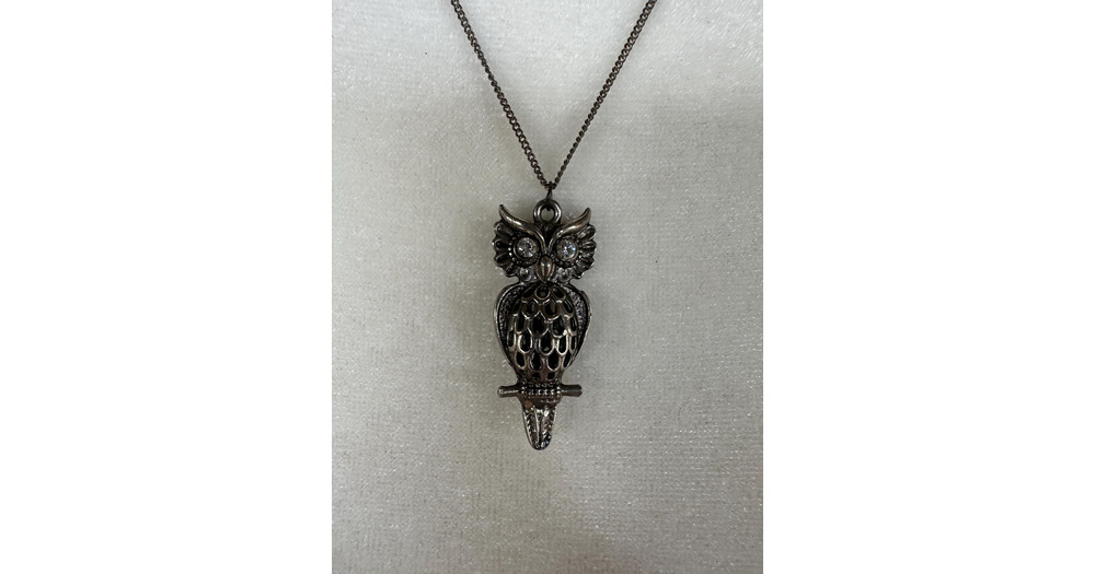 Vintage Gold-Tone Owl Pendant Necklace, 1970s Retro Woodland Statement Jewelry