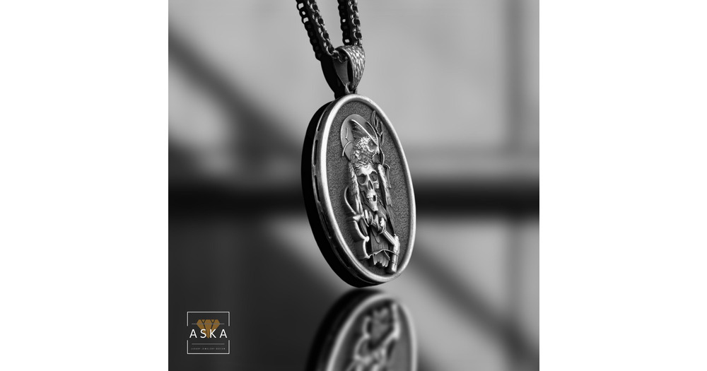 Oxidized Sterling Silver Owl Skull Necklace: Handmade Men's Jewelry