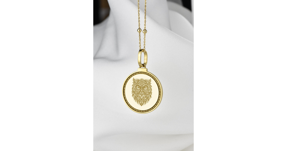 14K Solid Gold Owl Necklace - Tribal Animal Pendant