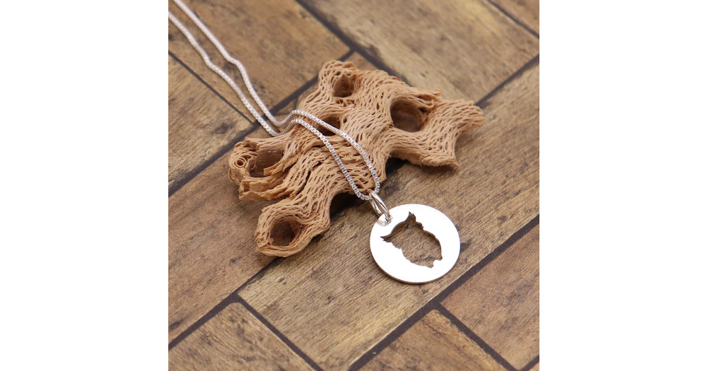 Sterling Silver Owl Necklace, Round Animal Pendant, Minimal Nature Jewelry Gift for Her