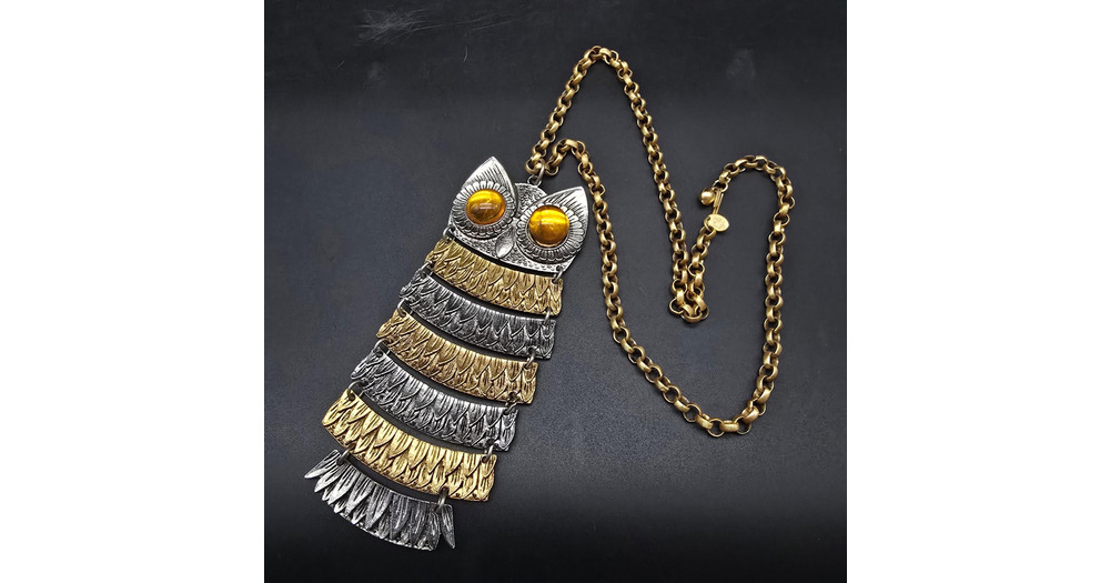 Park Lane Owl Pendant Necklace Gold Tone Silver Tone Orange Eyes Vintage Jewelry
