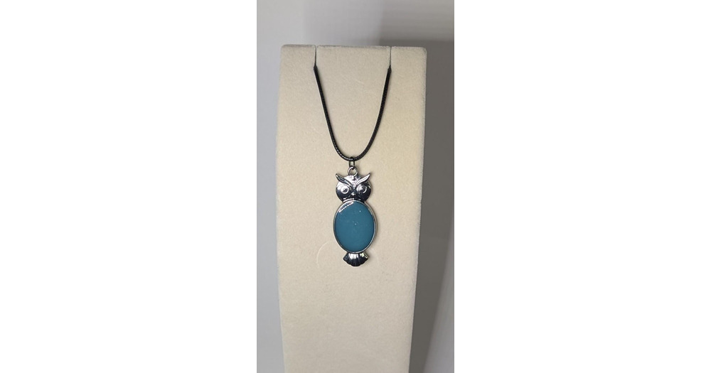 Teal blue owl pendant