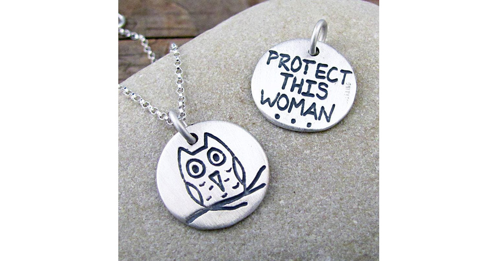 Etched Sterling Silver Owl Necklace - Protect This Woman Amulet