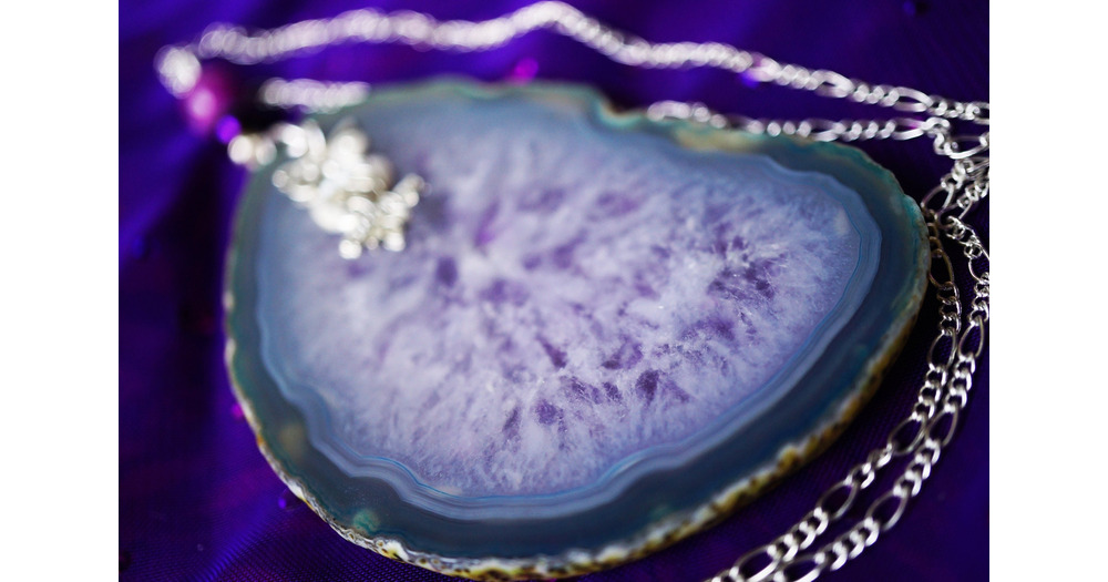 Owl Crystal Necklace, Large Agate Slice Jewelry, Purple Beaded, Owl Love You Forever Icy Lake Pendan
