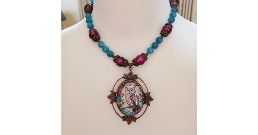 Colorful Owl Choker: Apatite, Garnet accents, Antique Bronze