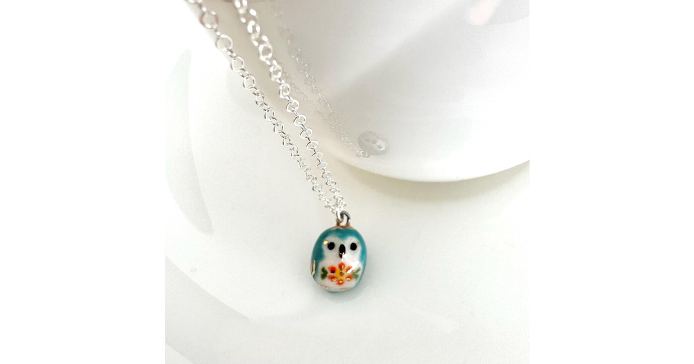 Tiny Blue Owl Necklace | Owl Lover Gift | Handmade Ceramic Jewelry