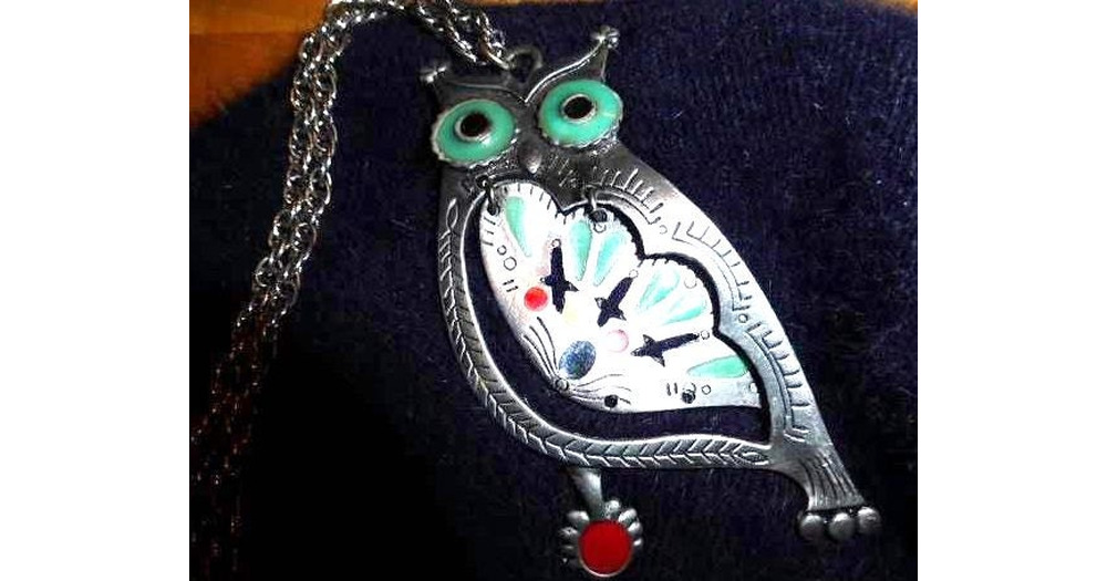 Sweet Retro Designer Celebrity Silver Enamel Vintage Owl Necklace
