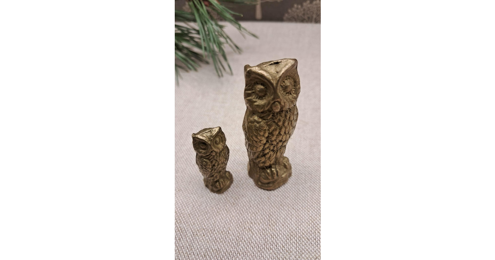 Vintage Solid Brass Owl Figurines – Set of Two Mini Woodland Ornaments