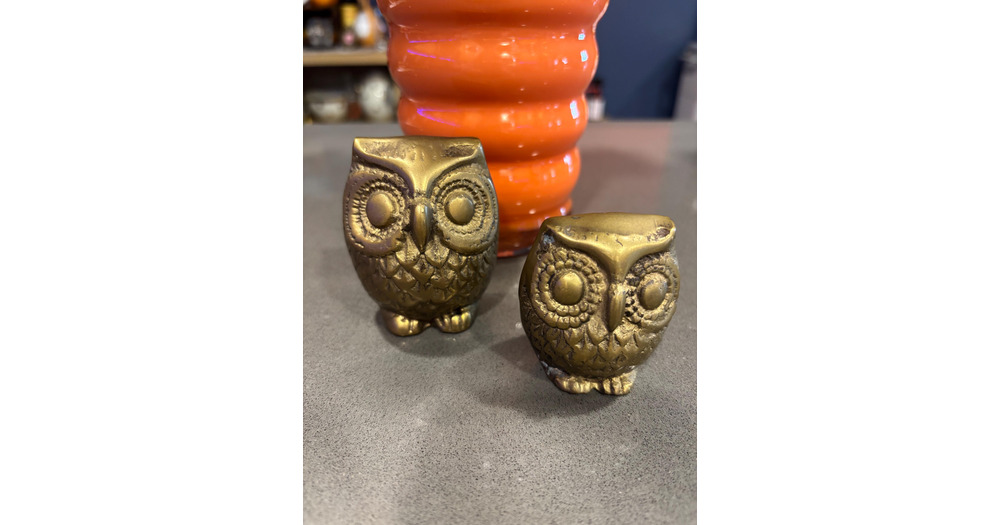 Vintage Brass Owl Figurines, Set of Two, Raptor Knick Knacks