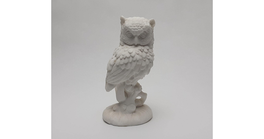 Vintage White Cast Marble Owl Carving Figurine Bird Home Decor Sculpture