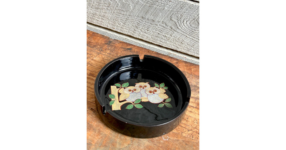 Mid Century Otagiri owls round ceramic ashtray trinket dish