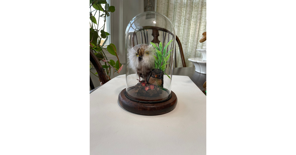 Vintage Faux Owl Taxidermy Diorama Glass Dome