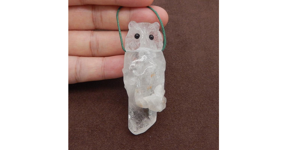 New Handmade Carved White Quartz Gemstone Owl Pendant Bead, Gemstone For Jewelry Cabochon Making, 62