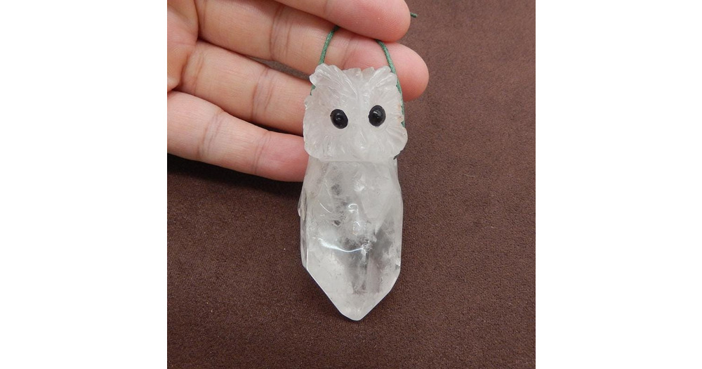 New Handmade Carved White Quartz Gemstone Owl Pendant Bead, Gemstone For Jewelry Cabochon Making, 64