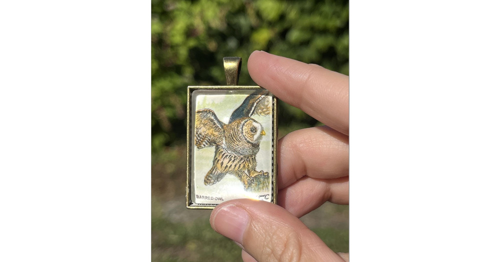 Barred Owl Vintage Postage Stamp Pendant
