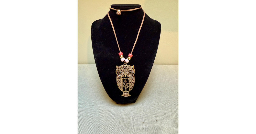 Vintage Owl Pendant Necklace Gold-Toned On Leather Cord