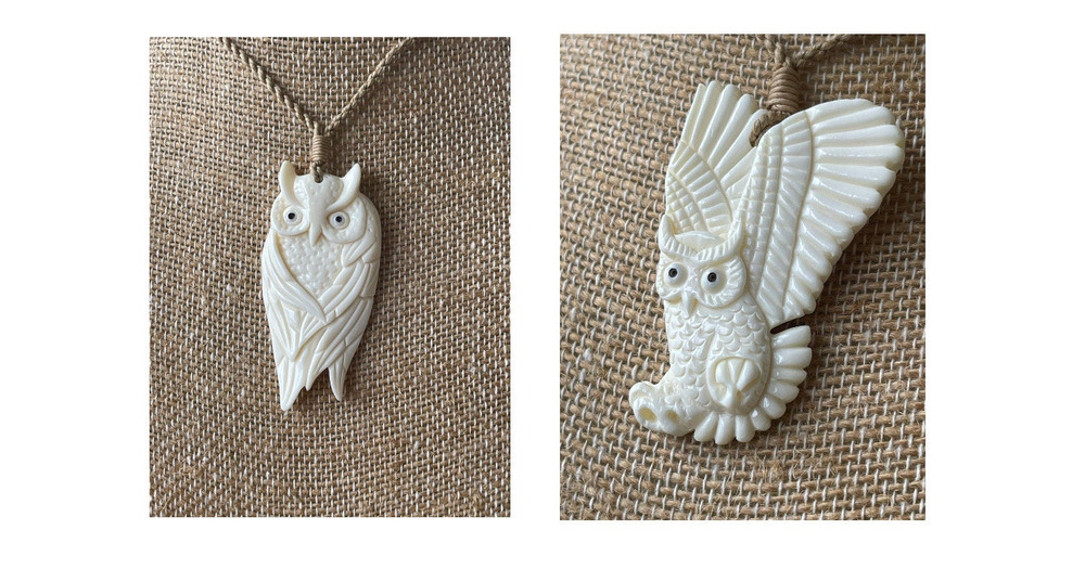 Hand Carved Bone Pueo Owl Pendant – Hawaiian Necklace