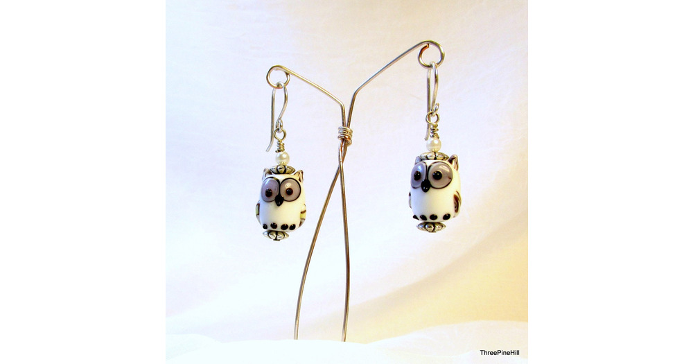 Earrings, Blown Glass Owl Earrings