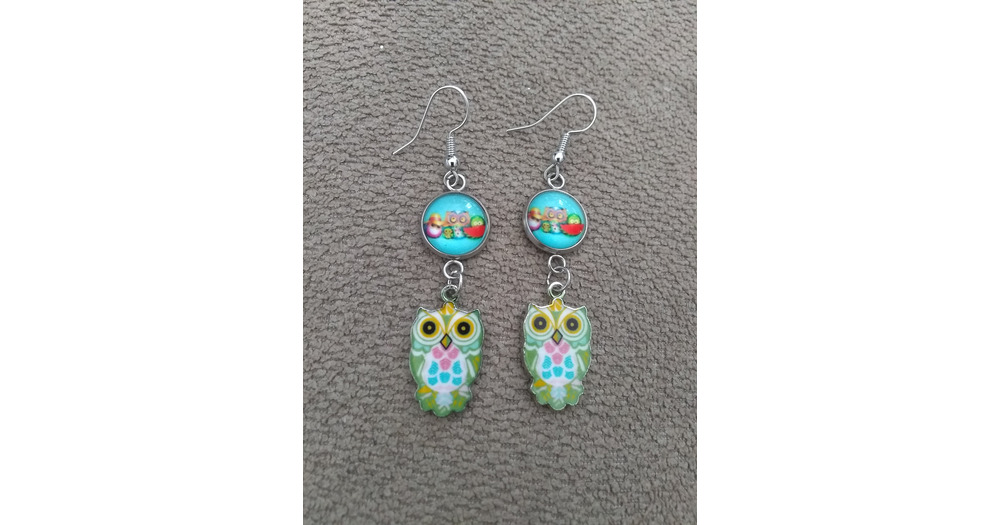 Owl design charms and cabochon earrings