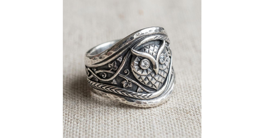 Sterling Silver Owl Ring, Wide Band Woodland Statement Ring, Oxidized Animal Jewelry, 925 Boho Bird