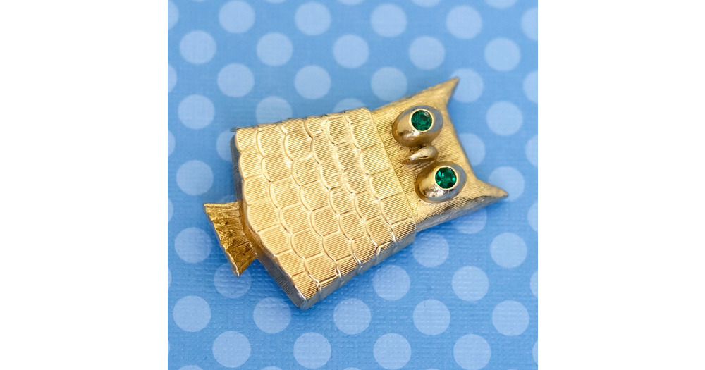Vintage Dainty Geometric Owl Green Eye Rhinestones Brooch by Avon - M30