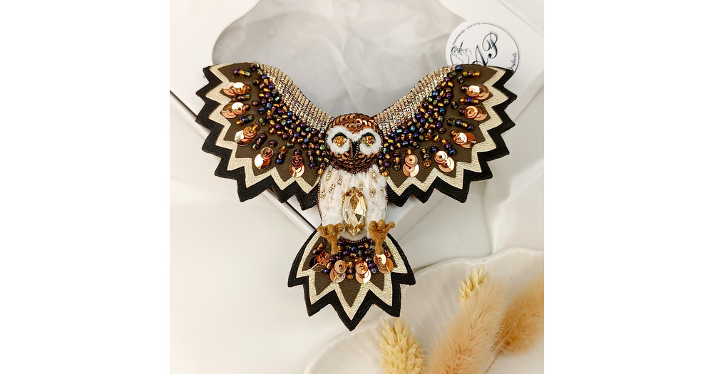 Handmade Embroidered Owl Brooch: Unique Beaded Bird Jewelry Gift