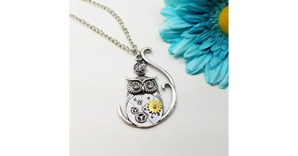 Steampunk Owl Necklace, Copper Necklace, Owl Necklace Gift, Cogs and Gears Necklace, Owl Jewelry, St