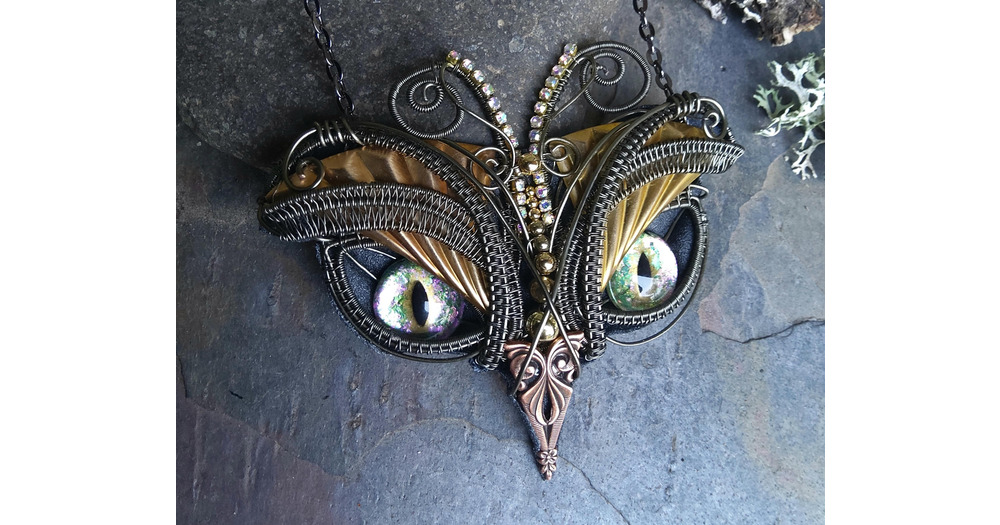 Gothic Steampunk Colorshift Pink to Green Eyes Owl Necklace
