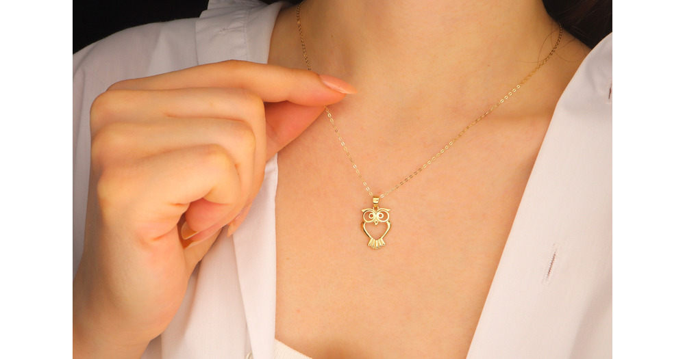 14K Gold Owl Necklace: Dainty Solid Gold Animal Pendant