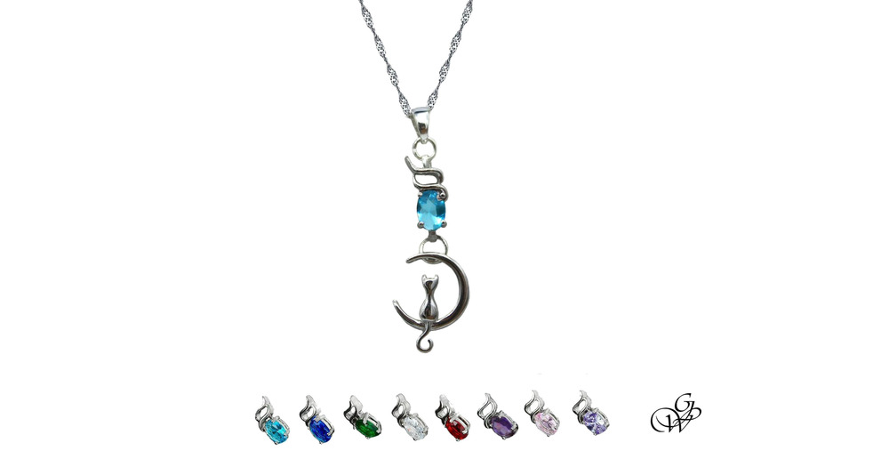 Collier chat assis lune hibou de cristal,bijou petit chat argent 925,cadeau nature,plaisir animal
