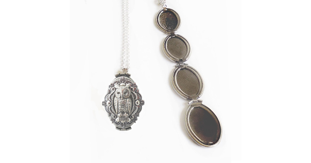 Four Photo Locket, Owl locket.4 photo locket necklace. Silver locket necklace gift for her Family tr